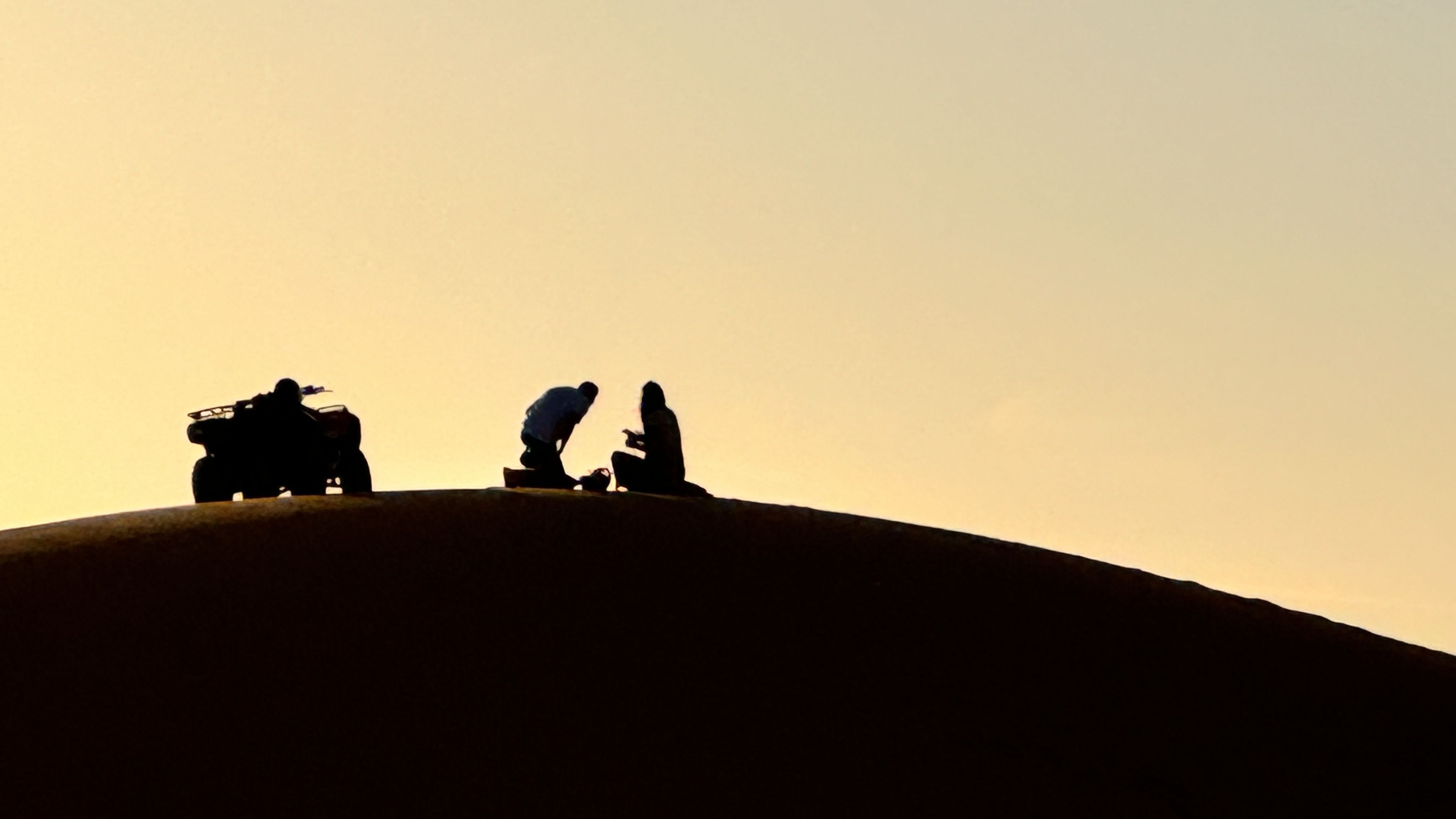 A serenidade, as extensões de areia e o silêncio que o deserto nos oferece é algo inexplicável bem como os povos muito pobres que lá habitam, as crianças com um sorriso na cara que surgem do nada ou os dromedários e os Tuaregues que aparecem entre as dunas.